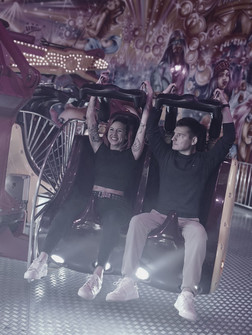 Villámcsődület, körbezárás, párokra szakadás! Bemelegítésként egymásról kellett egy-egy dupla expós remekművet alkotni, helyben kiretusálni, majd azonnal feltolni a már 100 főt is meghaladó, mindig pörgő WhatsApp-csoportunkba. A nyomás nagy volt! Ezt követően jött a második szint: olyan alternatív szögből fotózni a másikat, hogy a háttérben ott virítson a Práter teljes monumentalitása és giccsbe hajló vadsága.